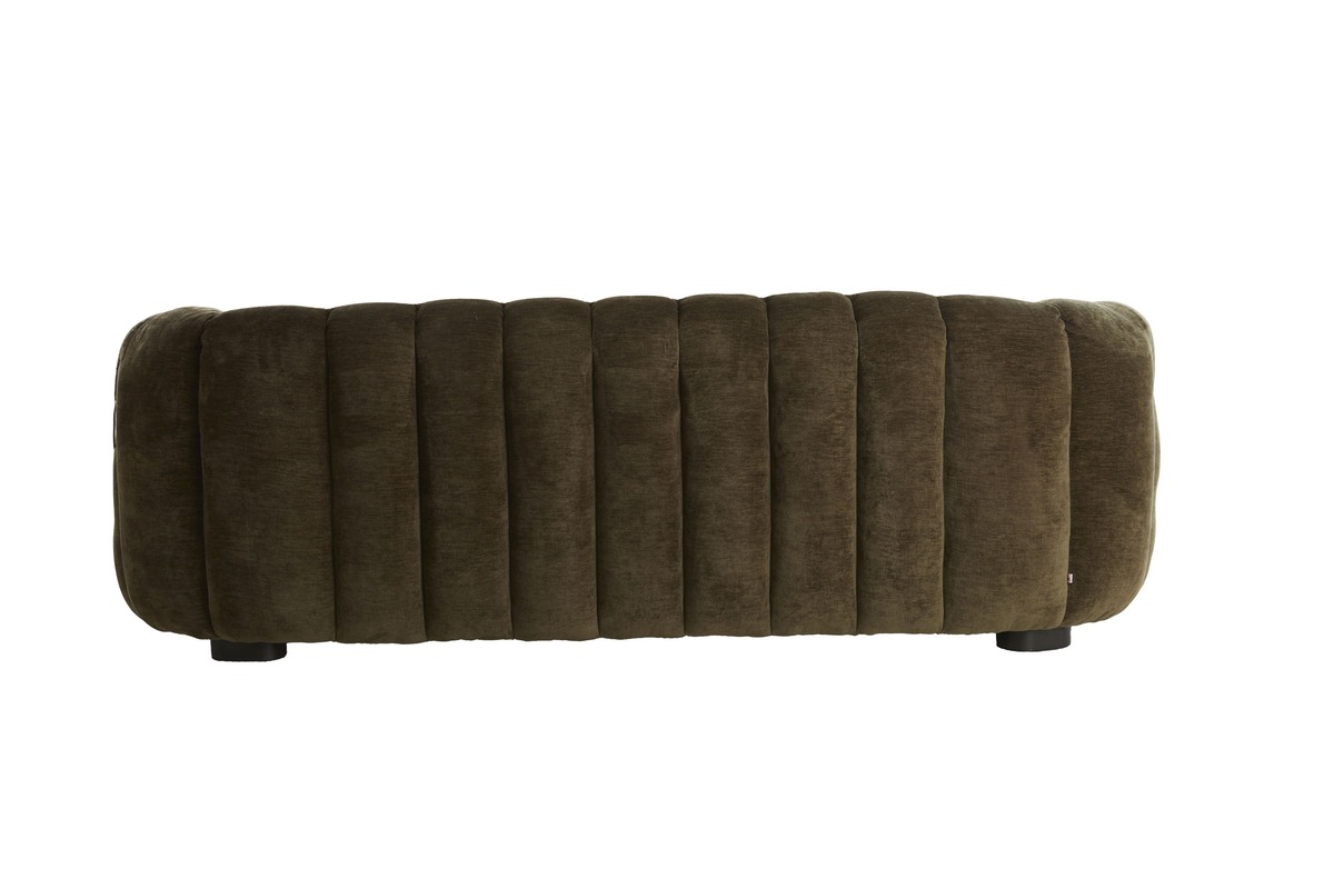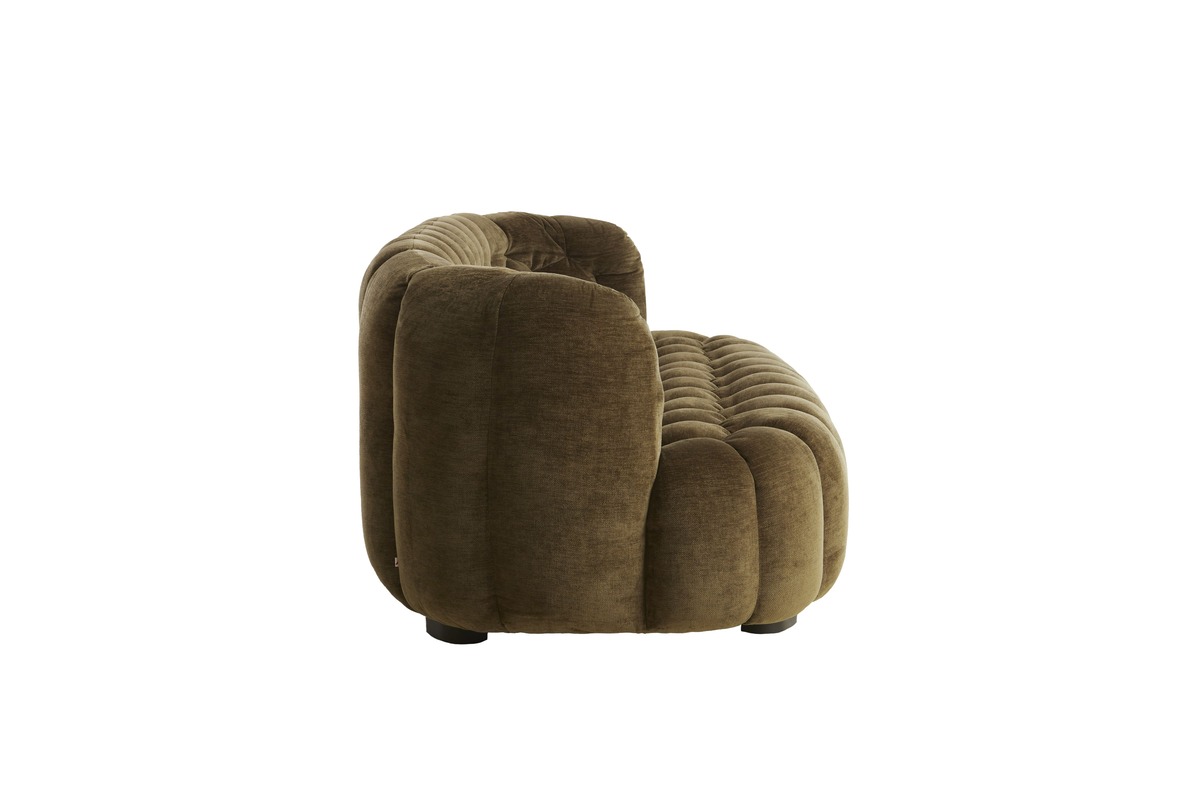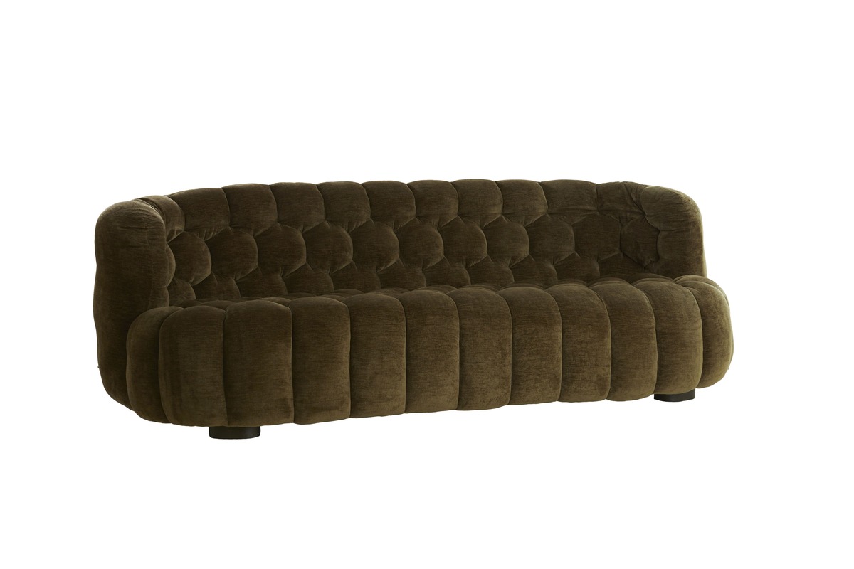Olivazöld színű design bársony kanapé lekerekített formájú nagy ülőfelületű kényelmes kanapé, mely megjelenésével eltér a megszokottól, helyezze nappaliba vagy hálószobába, hangulatos zöld színével, eleganciájával meghatározó bútordarabja lesz otthonának, ahol az ott töltött pihenés, olvasás során segít feltöltödni, relaxálni.