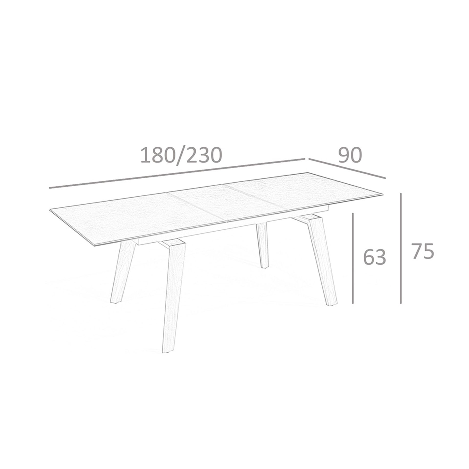 Az asztal 1 db. 50 cm-es kihúzható résszel rendelkezik, ezáltal mérete 180 és 230 cm között módosítható.