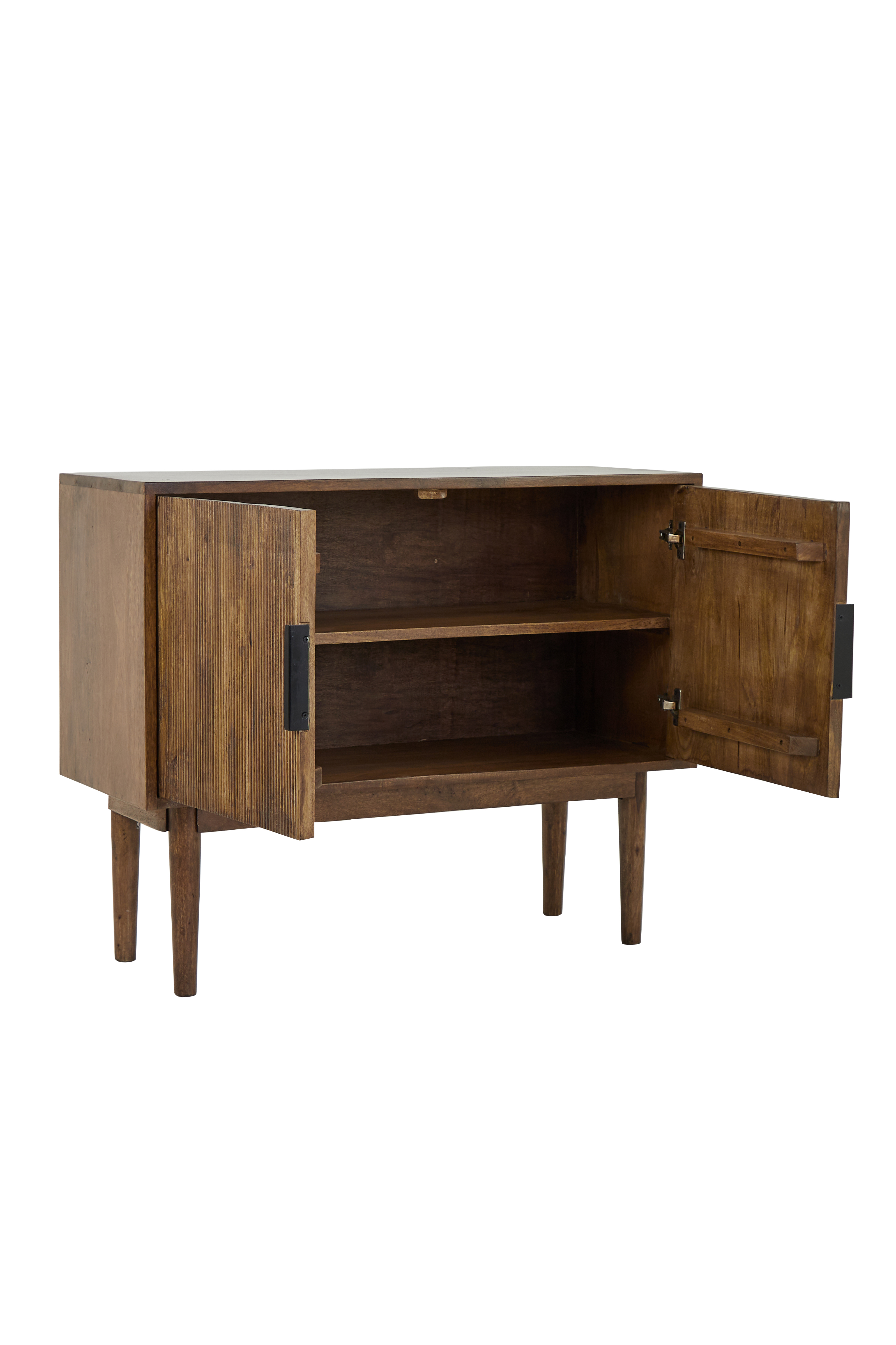 Barna színű 100 % mangófa komód fekete színű fogantyúval ideális választás hálószobába, előszobába egyaránt.