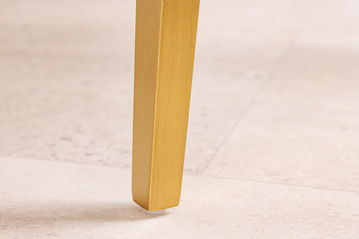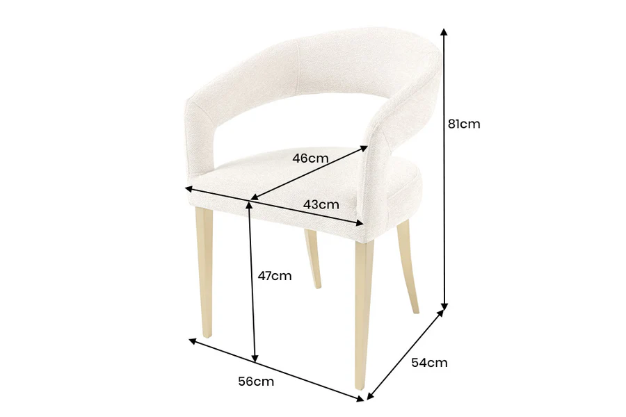 Modern, dekoratív megjelenésű, karfás, bézs színű szövettel kárpitozott étkezőszék pezsgő arany színű rozsdamentes acél lábakkal. Kényelmes és kellemes tapintású, ellenálló szövettel kárpitozott, elegáns étkezőszék kellemes színvilágával remekül illeszkedik bármely enteriőrbe.