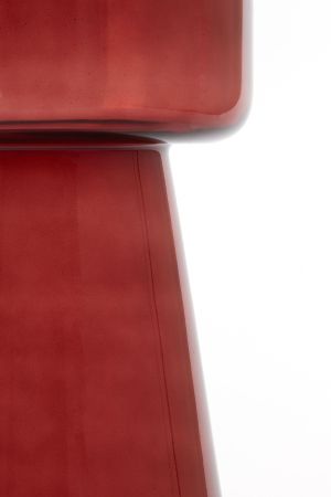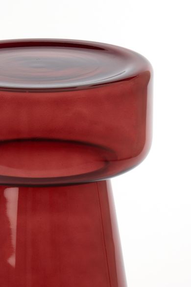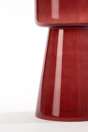Üvegből készült burgundy színű lerakóasztal megjelenése légies és elegáns. A karakteres bordó színárnyalat különleges fényt és mélységet kölcsönöz a térnek.
