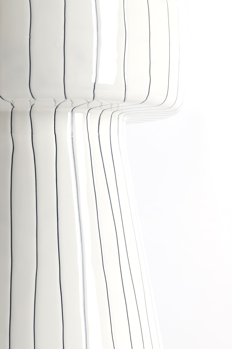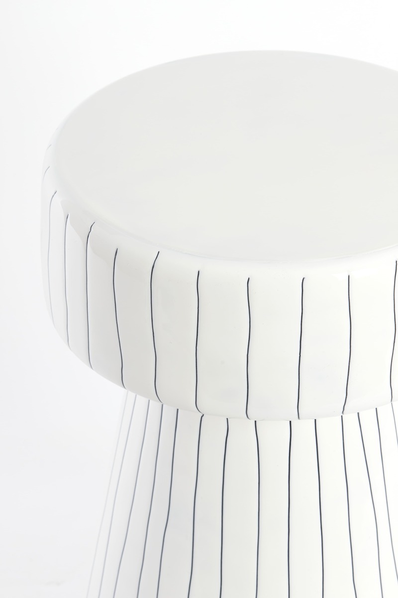 Fehér színű elegáns fém lerakóasztal fekete színű csíkozással. Helyezze fotelek, kanapék mellé, hogy helyet teremtsen akár lámpáknak, könyveknek, italoknak, miközben egyedi dizájnjával magára vonja a figyelmet, feldobja a teret ezzel beszélgetéseket indít.