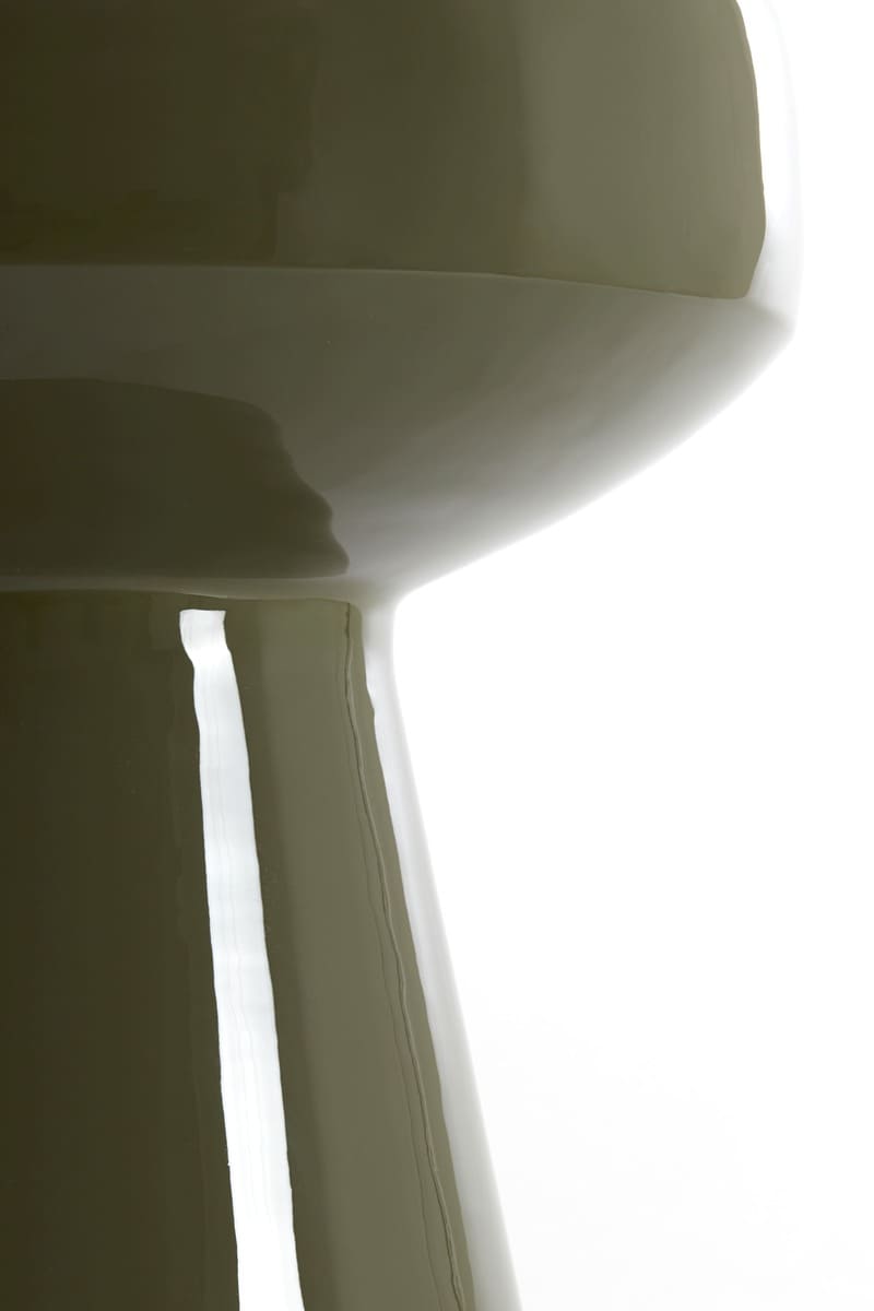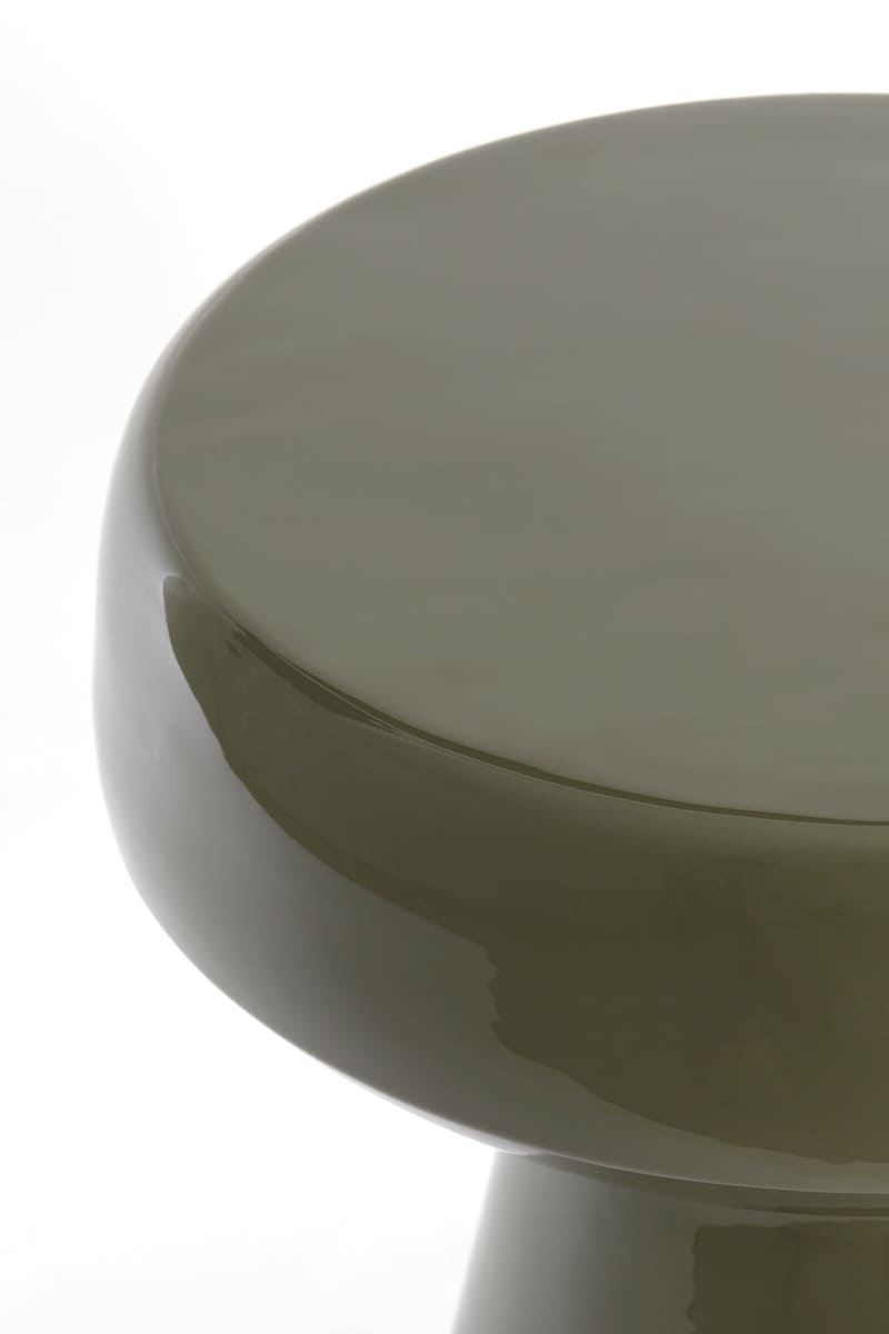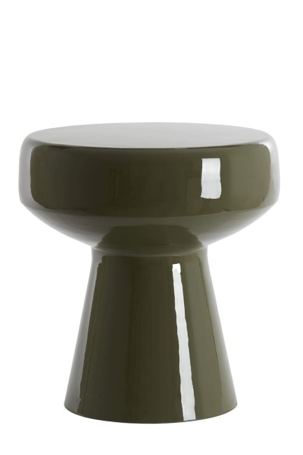 Kerek fényes sötét oliva zöld színű fém lerakóasztal stabil központi lábbal, zöld színvilága kiegyensúlyozottá és harmónikussá varázsolja környezetét. Helyezze fotel vagy kanapé mellé, ezzel ideális lerakófelületet biztosít könyveknek, lámpának poharaknak egyaránt.