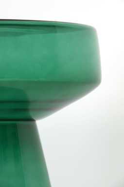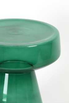 Zöld színű üvegből készült design lerakóasztal légies és modern megjelenésével vonzza a tekintetet, a kellemes színárnyalat különleges fényt és melegséget kölcsönöz a térnek.