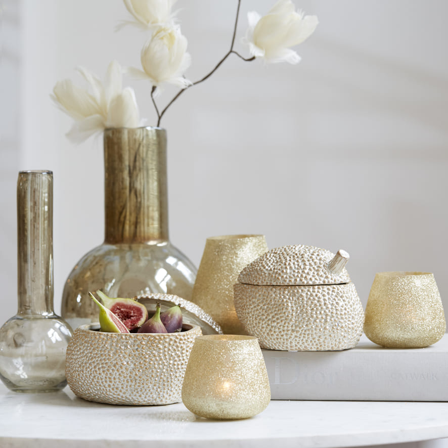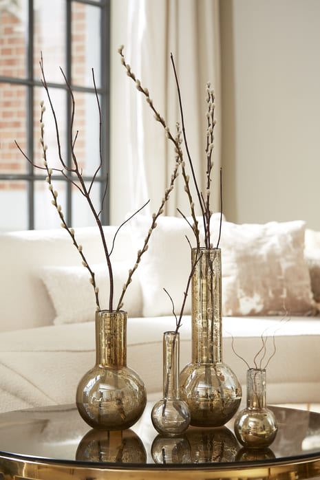 Borostyán színű kő hatású üveg váza , meleg színvilágával hangulatossá varázsolja a teret