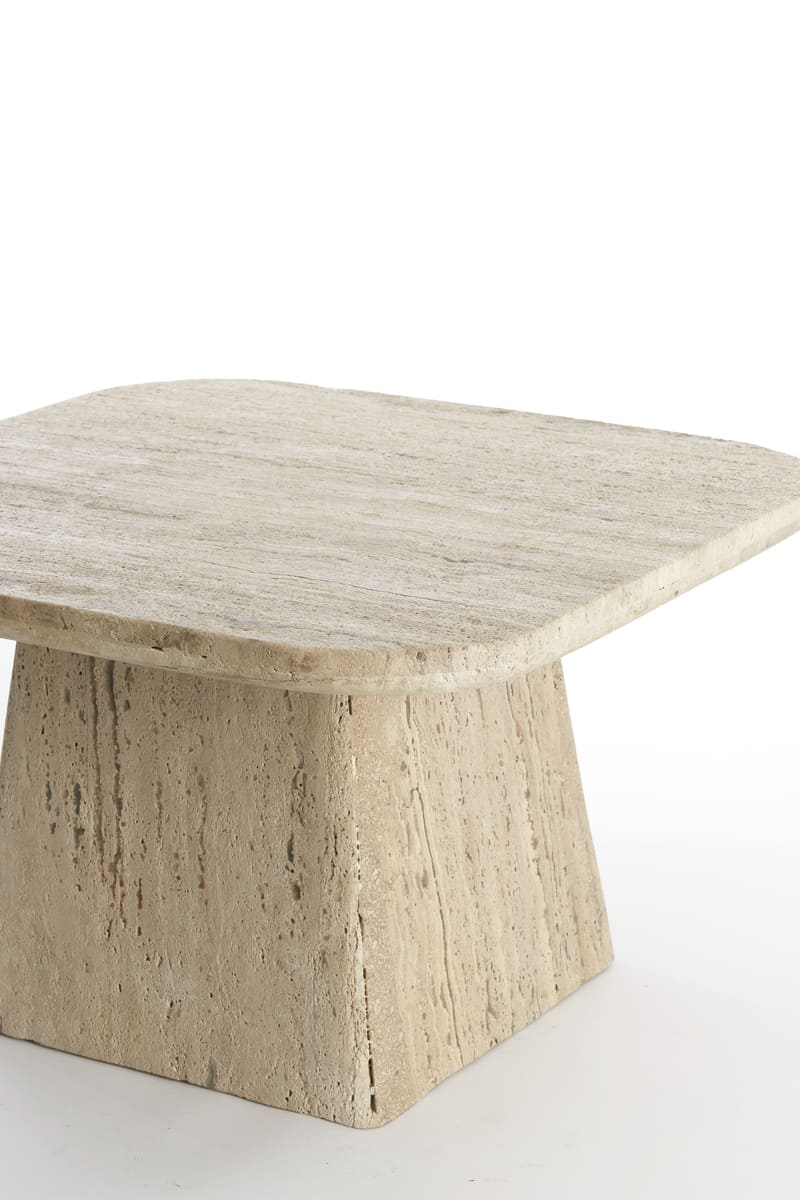Szögletes travertin mészkő dohányzóasztal központi kő lábbal tökéletesen illeszkedik bármely enteriőrben. Természetességével és karakteres megjelenésével meghatározó eleme lesz otthonának.
