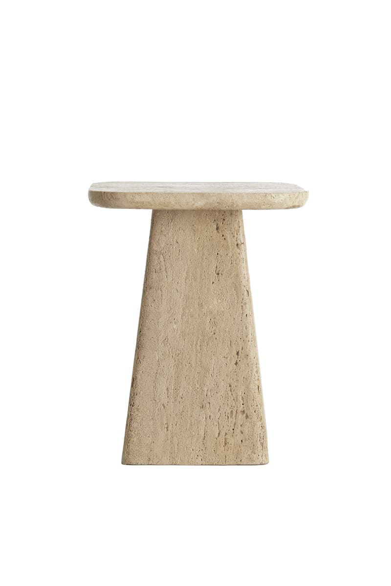 Szögletes travertin kő lerakóasztal központi kő lábbal
