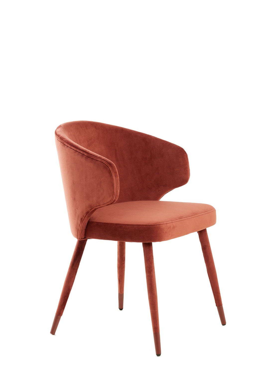 Modern megjelenésű vidám színvilágú étkezőszék barna színű fém lábakkal, lekerekített , egyedi és stílusos háttámlájával, kényelmes ülőfelületével valamint fiatalos megjelenésével lendületet varázsol otthonában