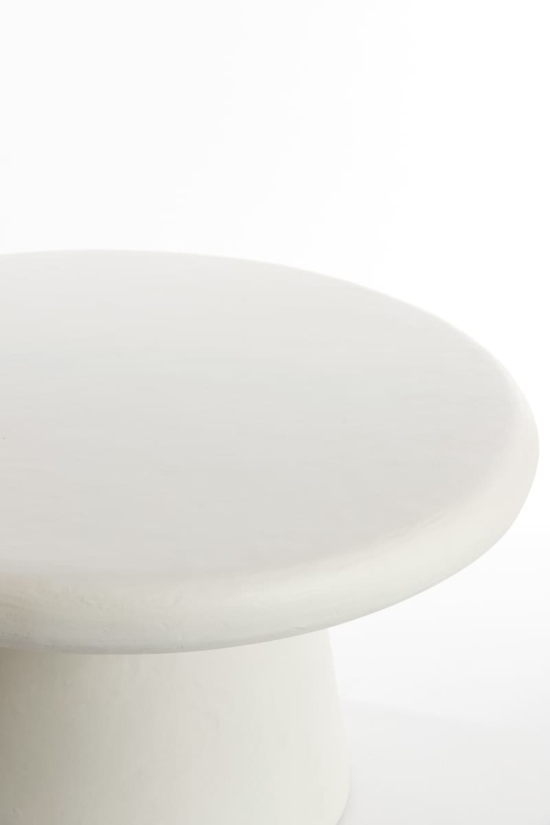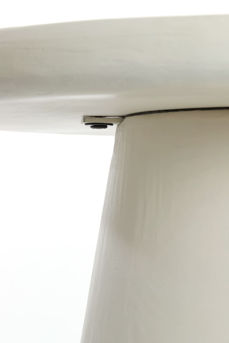 Fehér színű design kerek fa dohányzóasztal tömör központi lábbal letisztult formájú és visszafogott megjelenésű, modern stílusú otthonokban remek választás, mert tökéletes összhangot alkot az enteriőr bármely részével, ideális mérete miatt közepes és kisebb nappalikban is elhelyezhető.