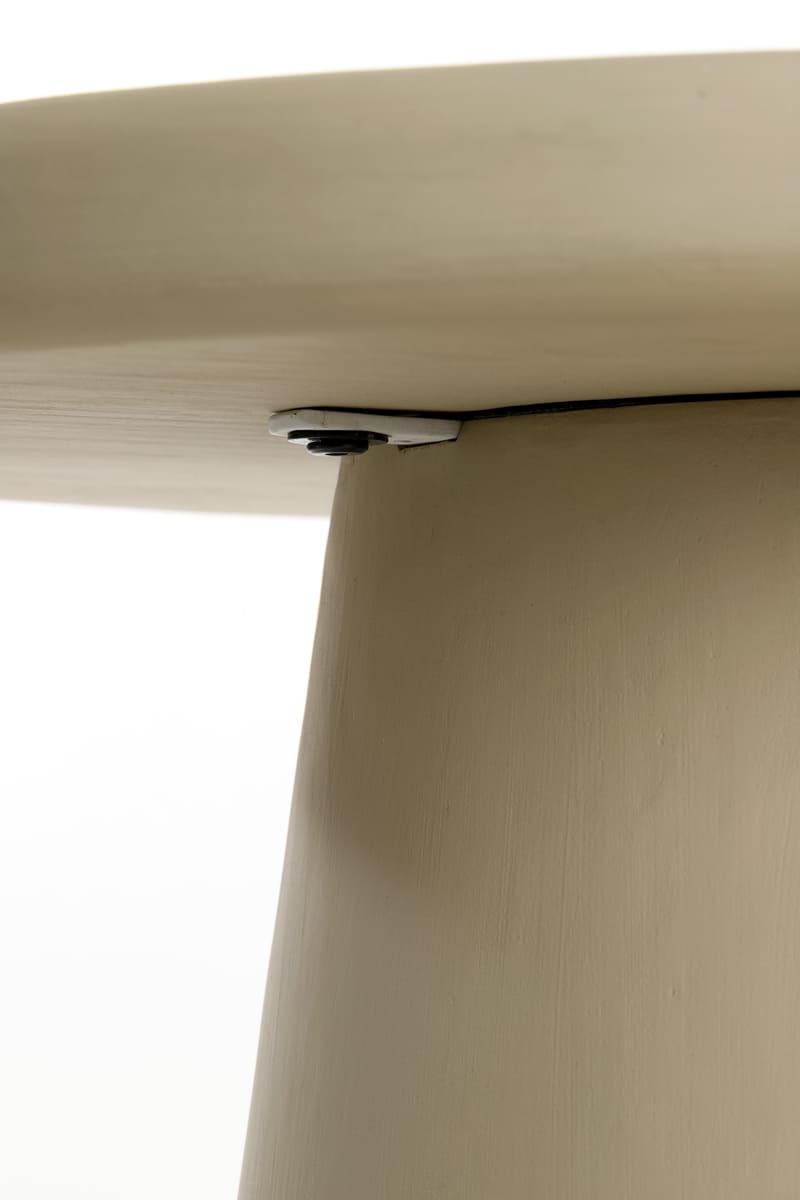 Bézs színű kerek design fa dohányzóasztal tömör központi lábbal, letisztult formájú és visszafogott megjelenésű, modern stílusú otthonokban remek választás, mert tökéletes összhangot alkot az enteriőr bármely részével, ideális mérete miatt közepes és kisebb nappalikban is elhelyezhető.