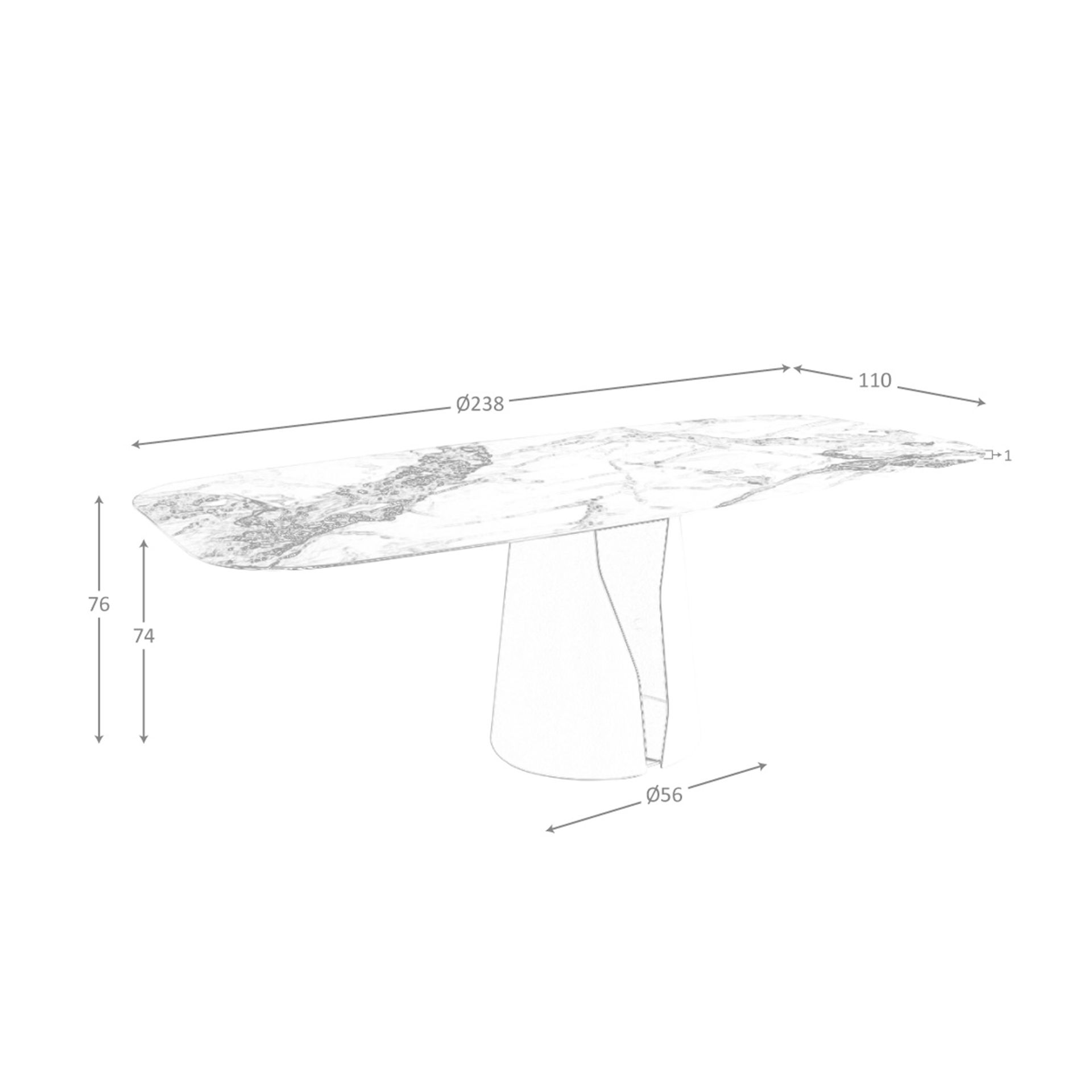 Porcelán márvány asztallapja ellenálló és tartós, eleganciát és időtálló megjelenést kölcsönöz otthonának, központi rozsdamentes acél láb kialakítása masszív, formatervezése miatt egyedi dizájner bútordarab.