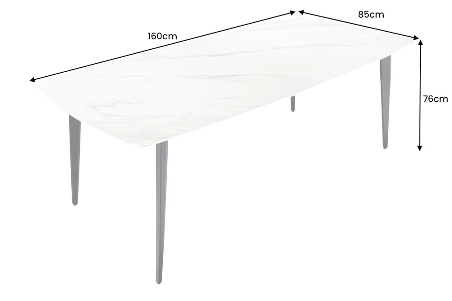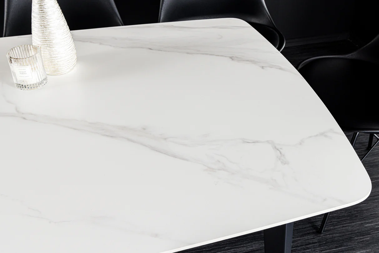 Márvány mintás kerámia lapja rendkívül ellenálló és tartós, ezáltal az asztal időtálló.