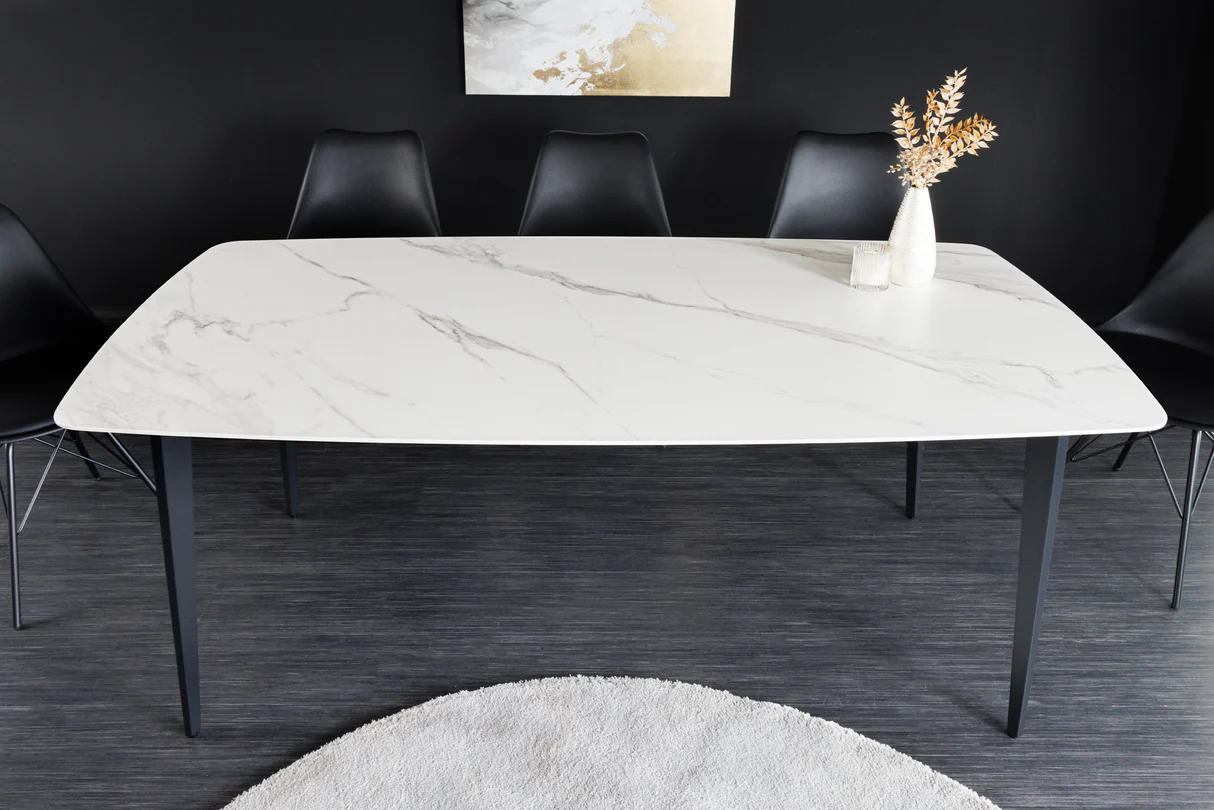 Márvány mintás kerámia lapja rendkívül ellenálló és tartós, ezáltal az asztal időtálló.