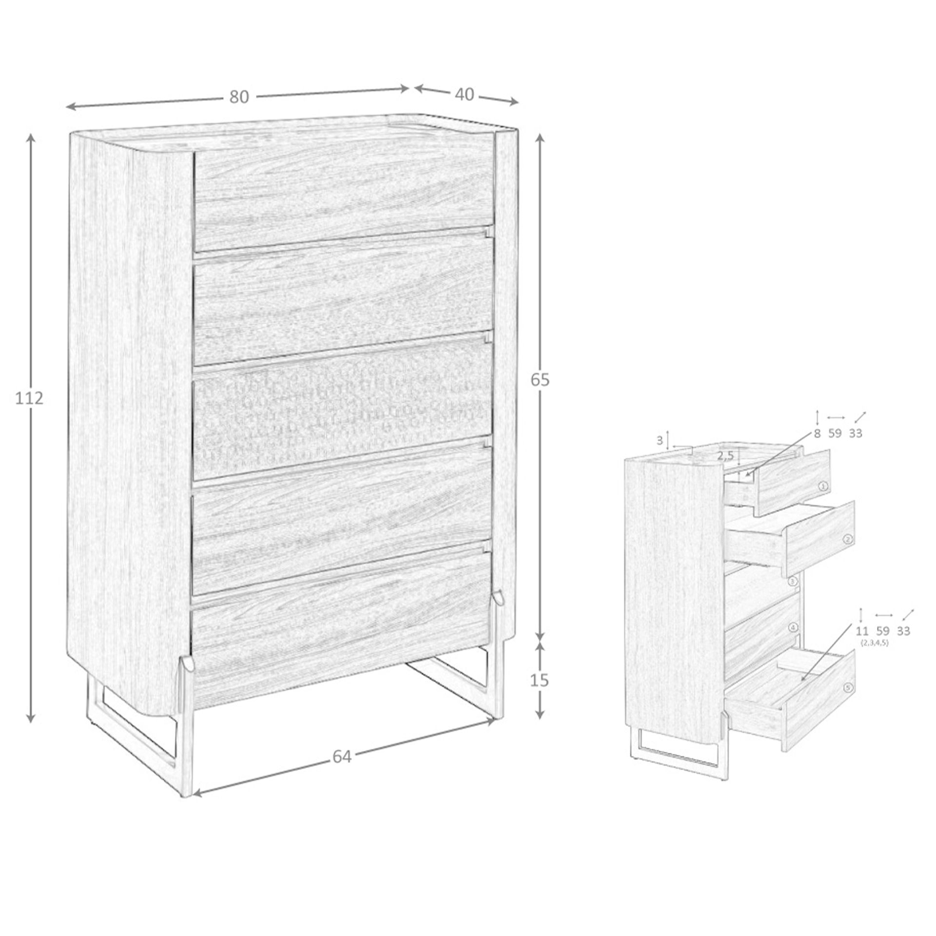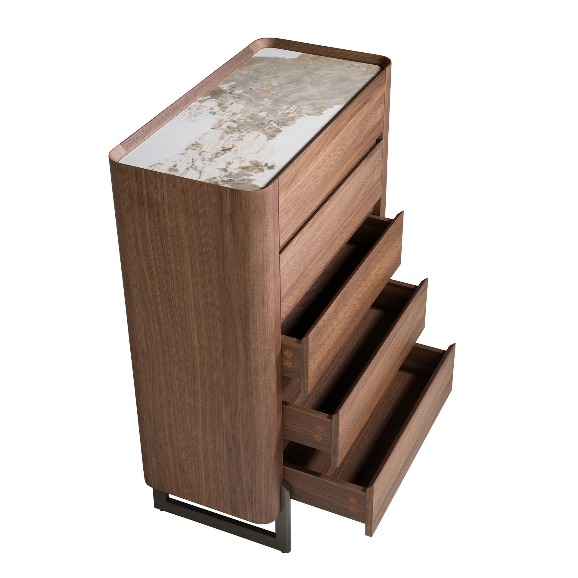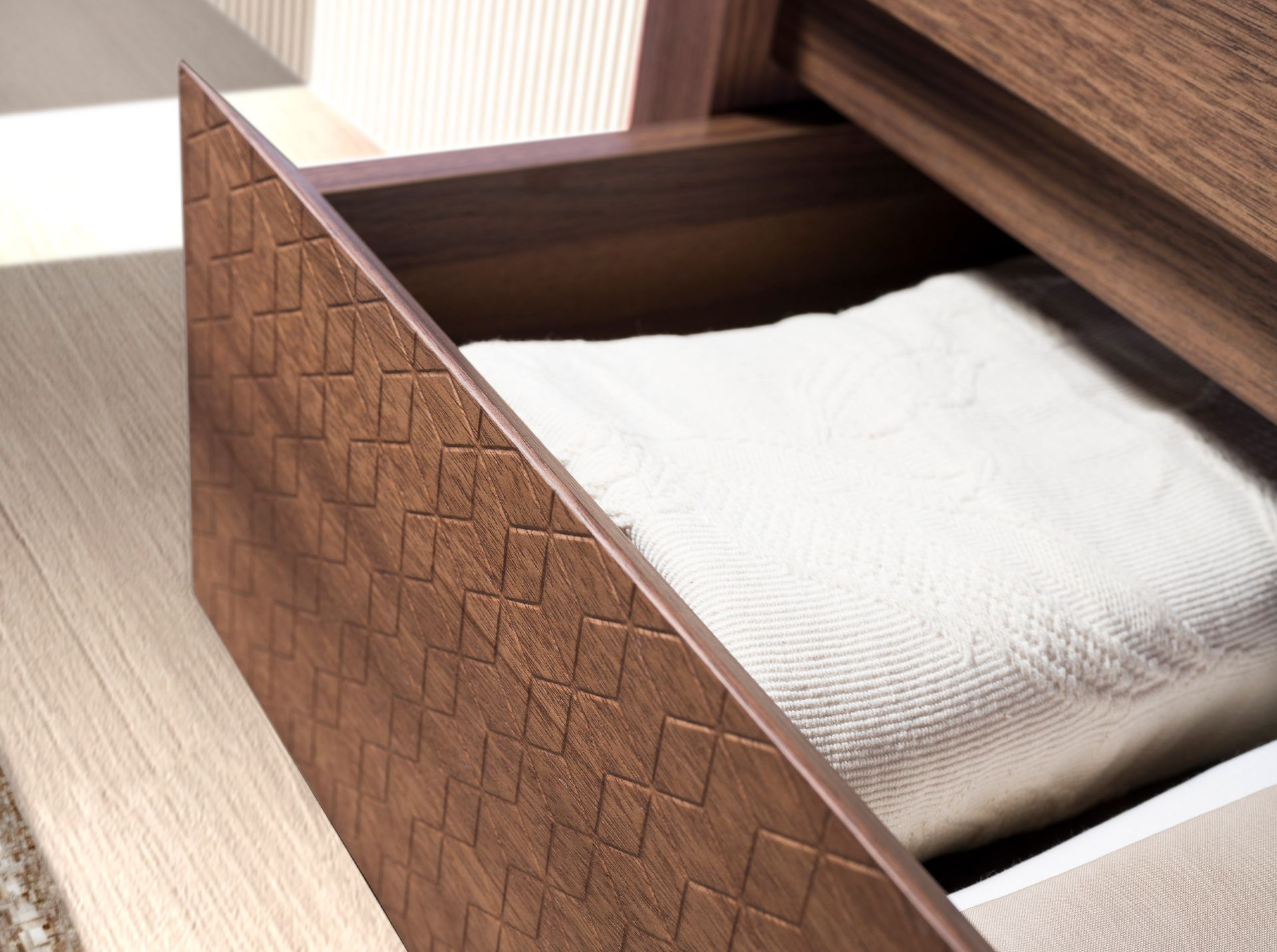 Tágas tárolóhellyel és 5 fiókkal rendelkezik, melyek lágyan záródó rendszerrel működnek.