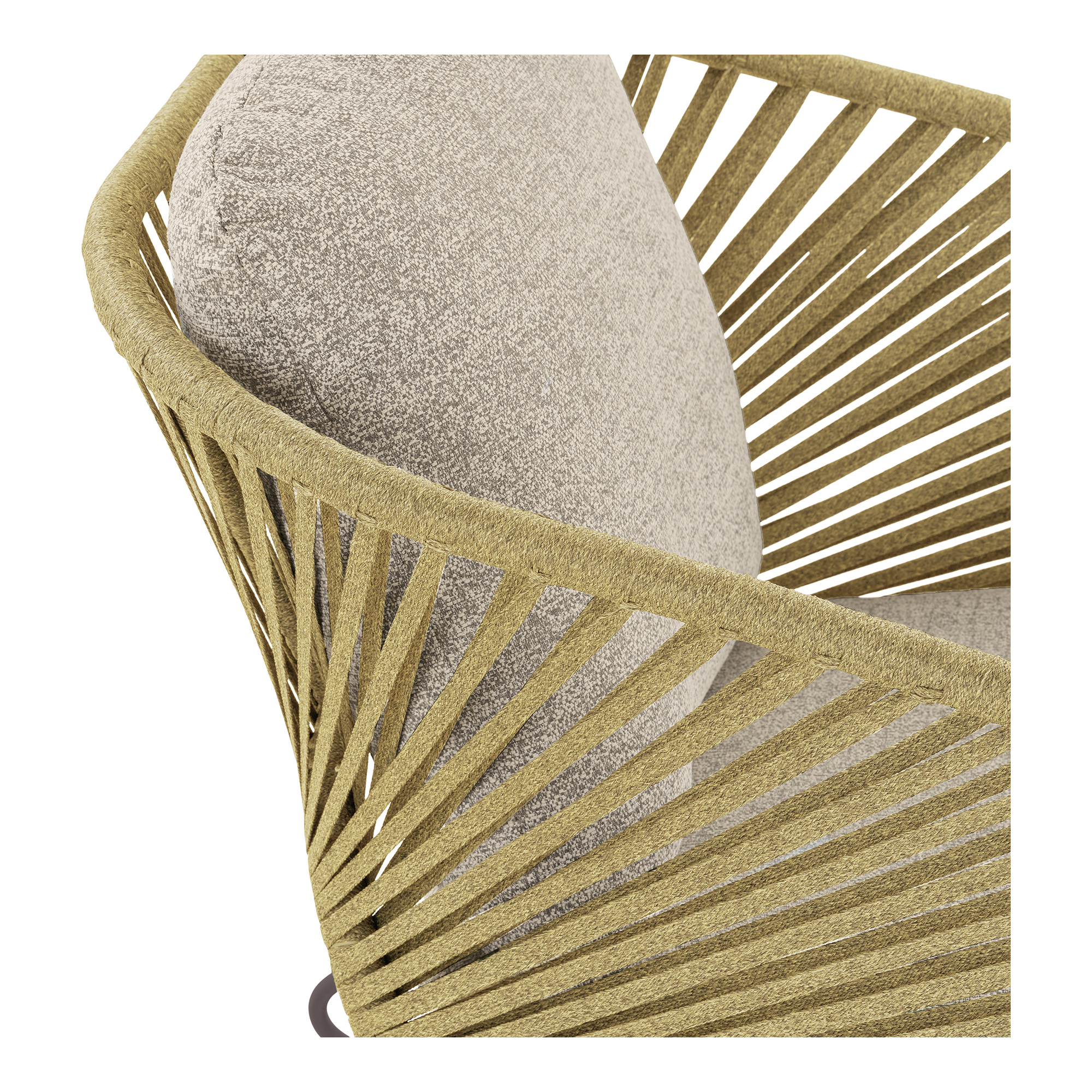 Design kerti bútor szett , homok színű kötél fonatos ülőgarnitúra bézs színű acél vázzal és cipzározható kényelmes ülő és hátpárnákkal továbbá 2 db dohányzóasztallal nagyszerű választás teraszra, kertbe egyaránt. Élvezze a szép időt ezzel a stílusos kerti bútor szettel, amely stabil és elegáns, tökéletes kényelmet biztosít egy jó könyvhöz vagy egy jó beszélgetéshez.