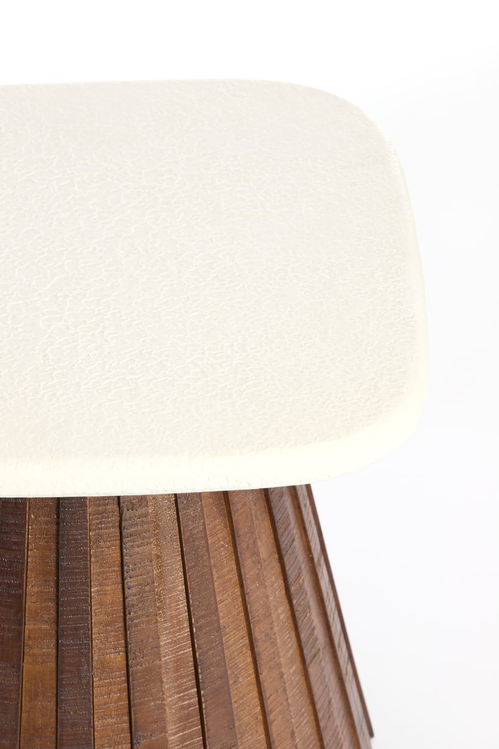 Krém színű design teakfa és mdf kombinációjából készült lerakóasztal barna színű lábbal kiemeli otthona természetességét, ideális bármely stílusú enteriőrhöz, helyezze nappaliba vagy hálószobába könyvek, italok elhelyezésére. Alacsonyabb kivitelű társával egyedi összahangot alkotnak és stílusos hatást csempésznek otthonába, dohányzóasztalként is nagyszerűen funkcionál.