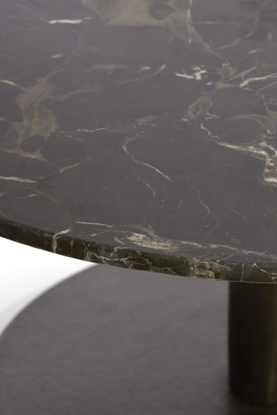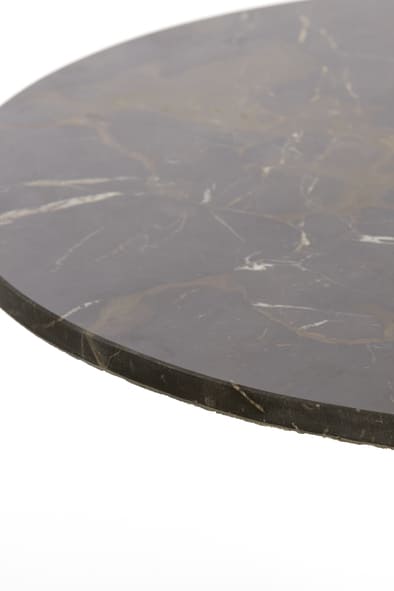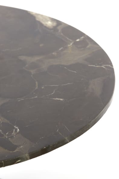 Sötétbarna színű márvány lappal és központi fém lábbal készült dekoratív dohányzóasztal meggyőző eleganciájával és a márvány természetességével remekül illeszkedik bármely stílushoz egyaránt.