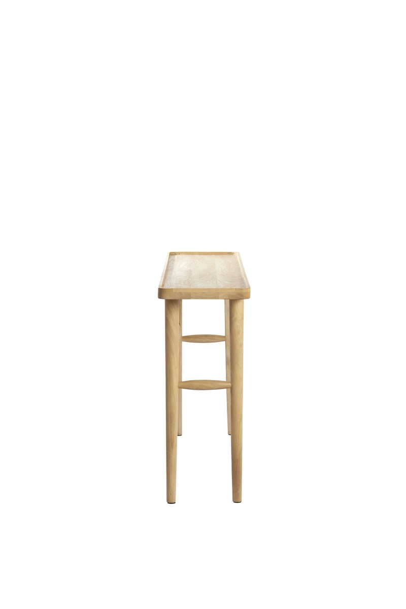 Natúr színű mangófa design konzolasztal masszív asztallappal és elegáns karcsú lábakkal. Ideális előszobába helyezve a mindennapi használati tárgyak tárolására valamint helyezzen rá virágot, gyertyatartót, asztali lámpát, ezzel tükrözve személyiségét, kreativitását.