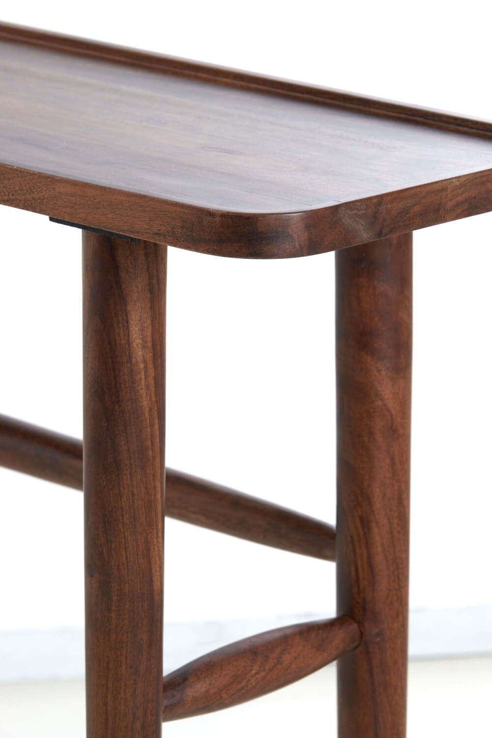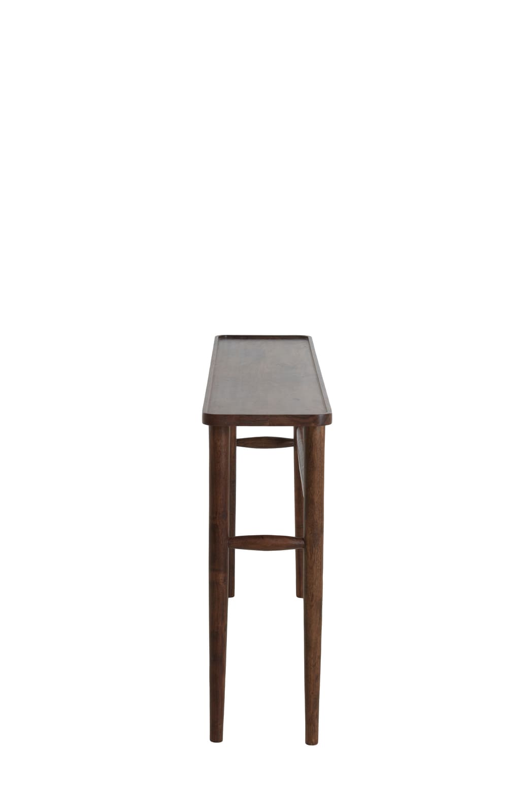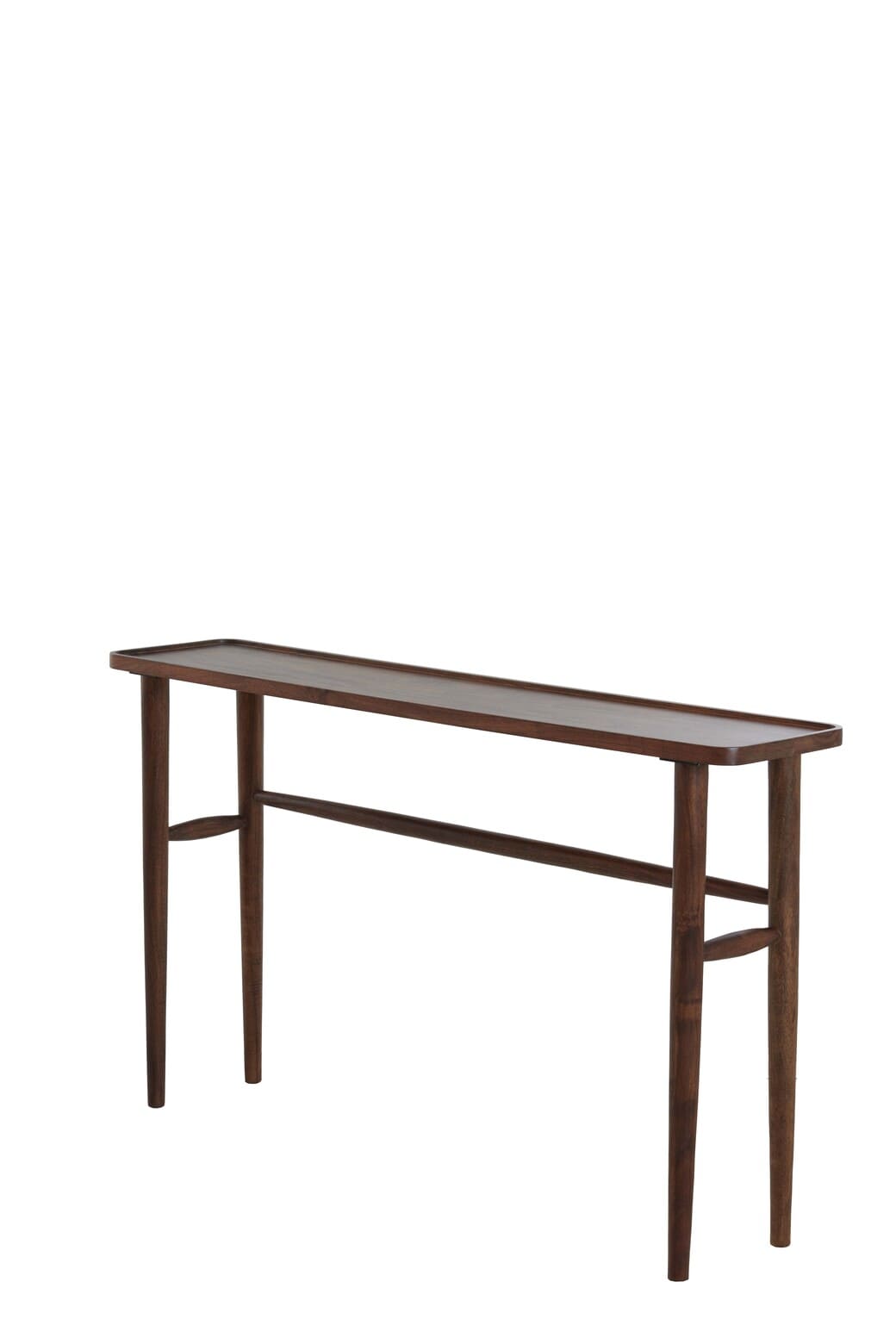 100 % akácfa barna színű design konzolasztal masszív asztallappal és elegáns karcsú lábakkal. Ideális előszobába helyezve a mindennapi használati tárgyak tárolására valamint helyezzen rá virágot, gyertyatartót, asztali lámpát, ezzel tükrözve személyiségét, kreativitását.