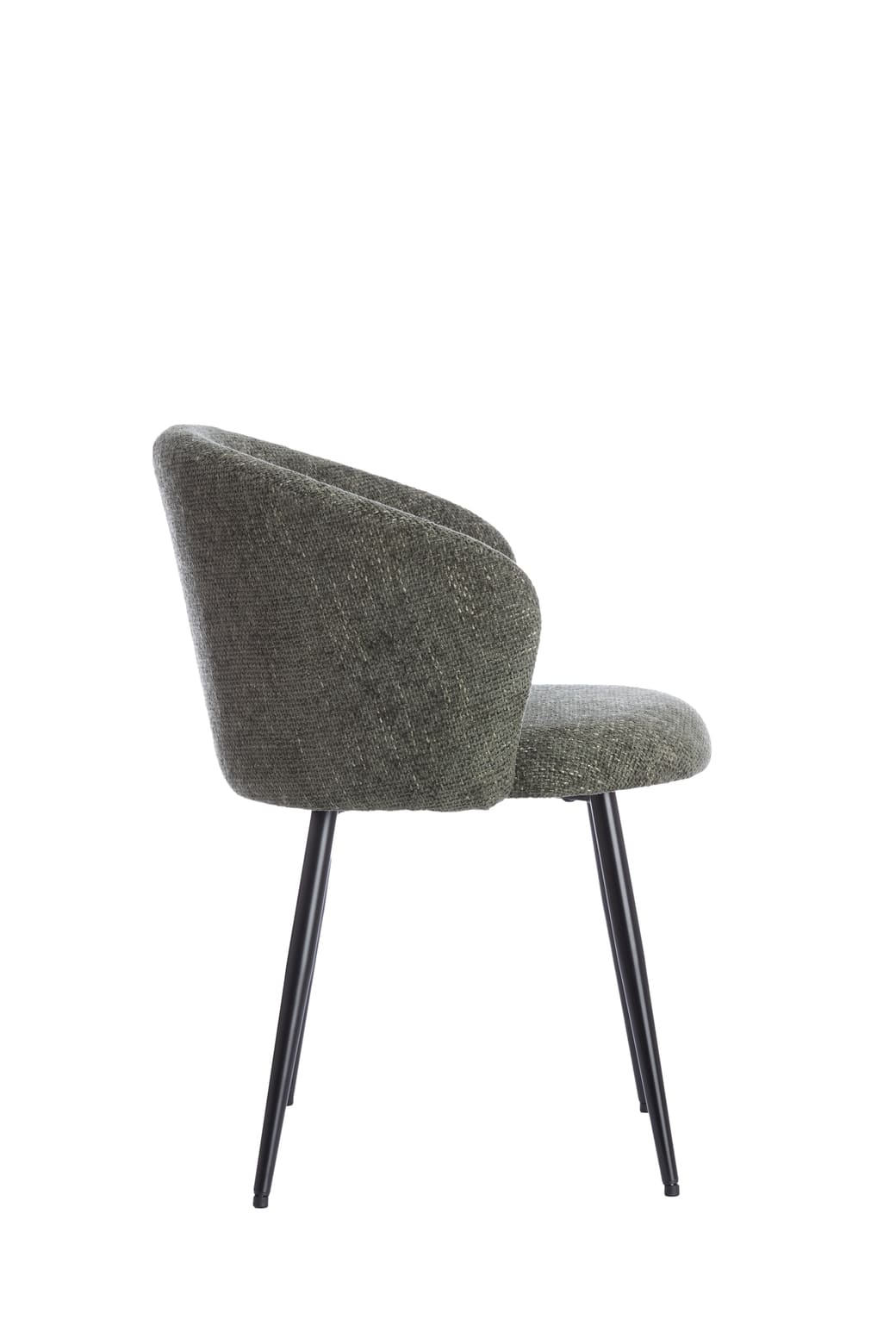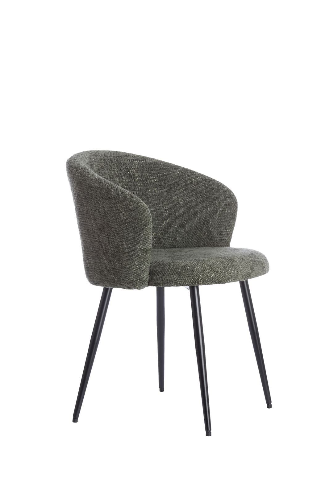 Elegáns étkezőszék sötétzöld színű szövettel, matt fekete színű fém lábakkal.