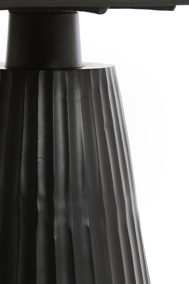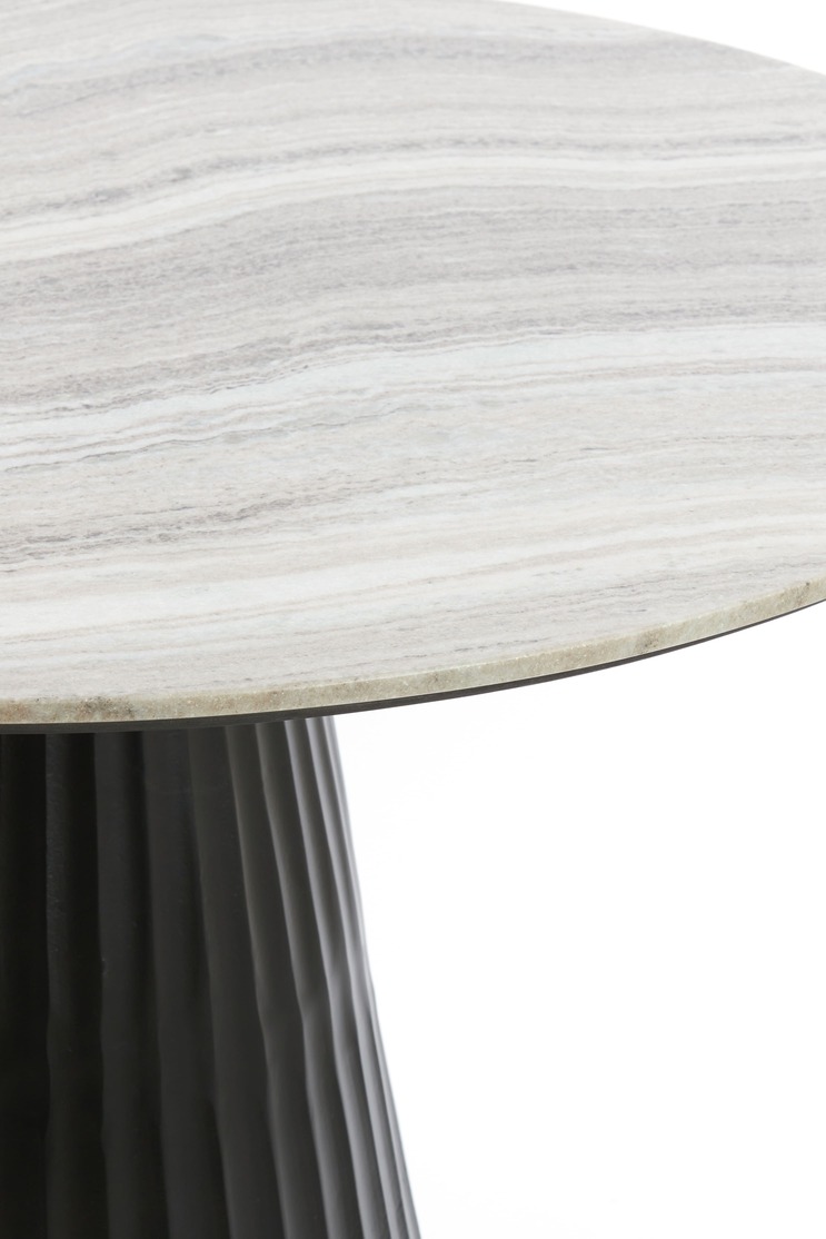 Kerek formájú design étkezőasztal bézs színű márványlappal és kúp formájú, lefelé szélesedő matt fekete színű központi fém lábbal elegáns megjelenésű, a márvány lap finoman erezett, masszív fém lába bordázott felületű, kerek formája miatt ideális helykihasználtságot eredményez, így kisebb méretű étkezőkben, konyhákban is kényelmesen használható. Nagyszerű választás, ha egy tartós és kifinomult megjelenésű étkezőasztalt keres, amely tökéletesen illeszkedik bármely enteriőrhöz egyaránt.