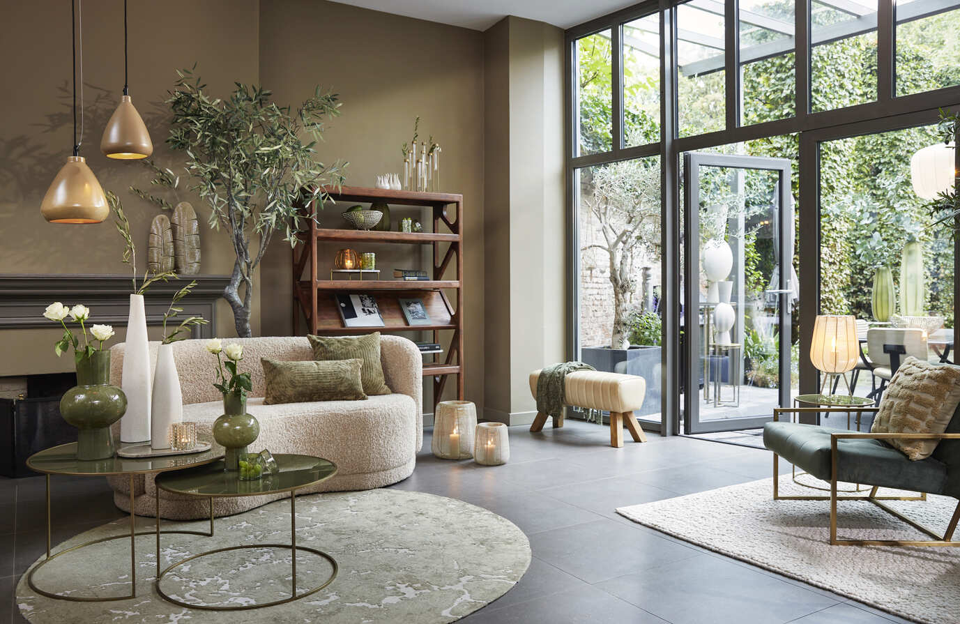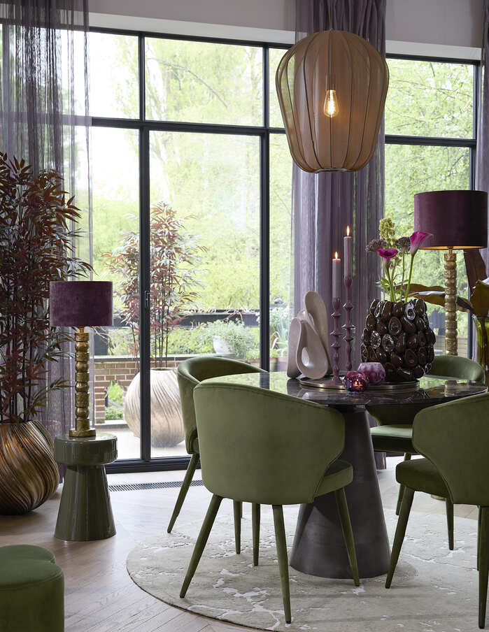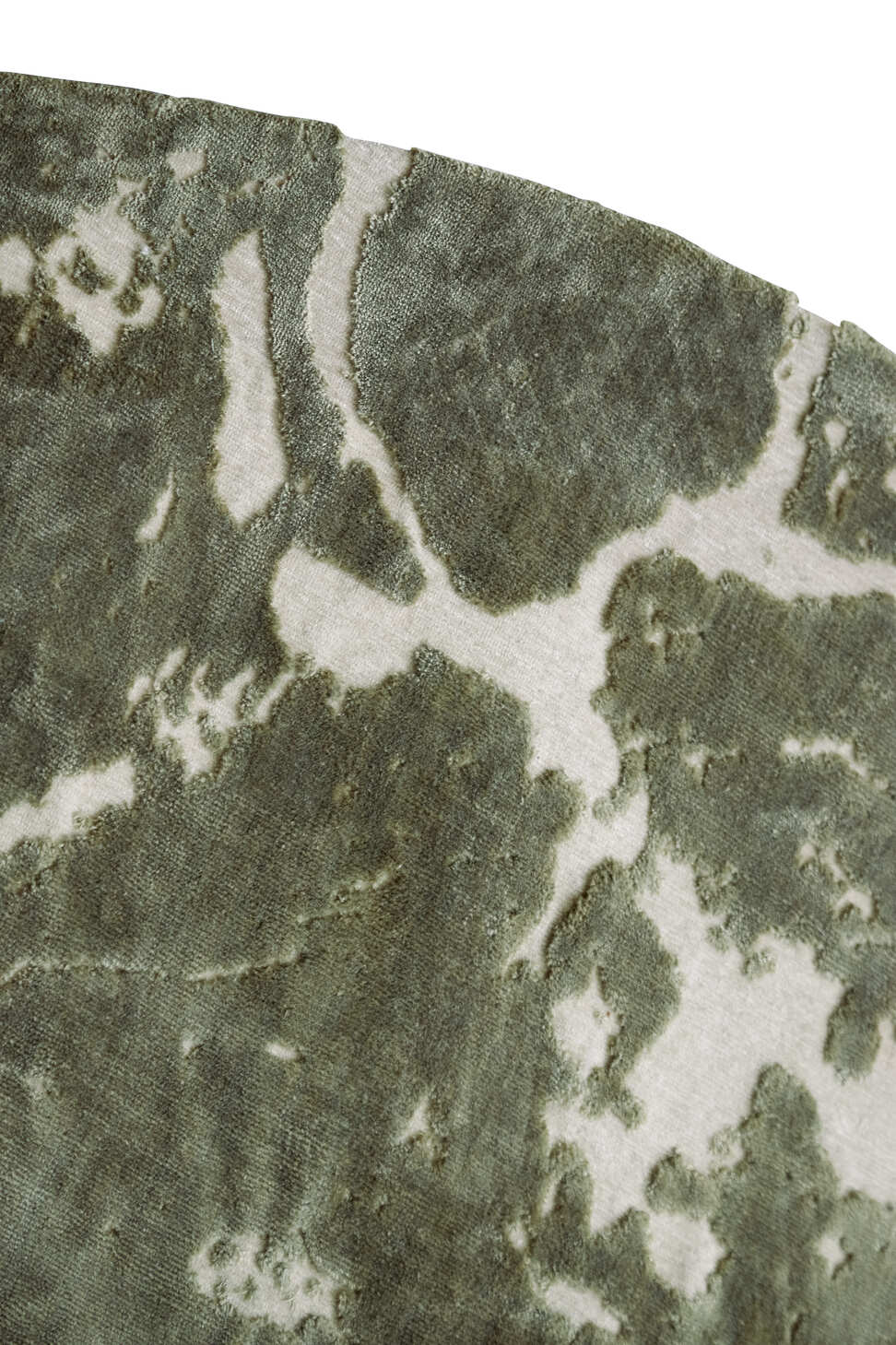 Oliva zöld és világos szürke színű kerek szőnyeg lenyűgöző hatást kelt zárványokra emlékeztető erezettségével és design megjelenésével, ideális nappaliba, étkezőbe egyaránt.
