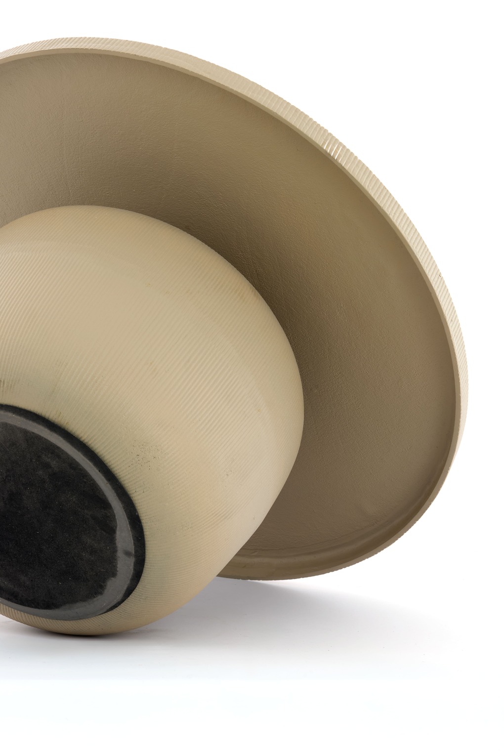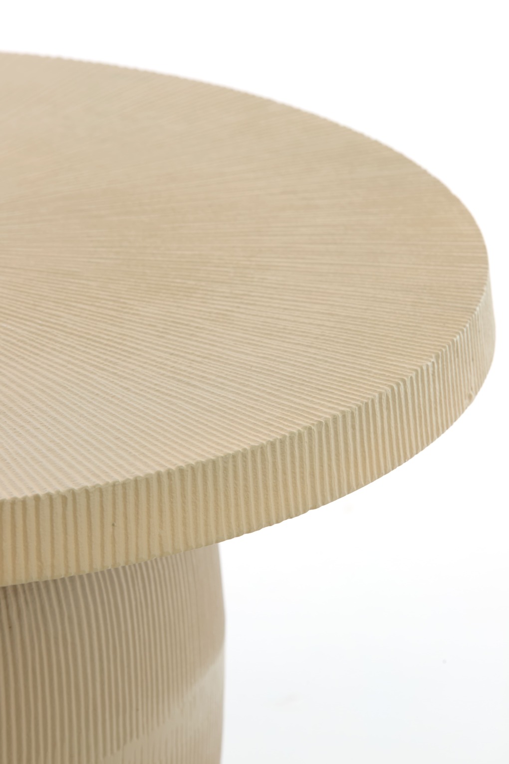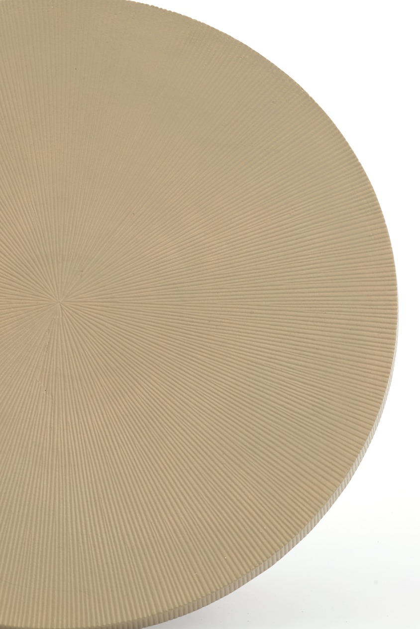 Kerek matt homok színű fém dohányzóasztal masszív központi lábbal