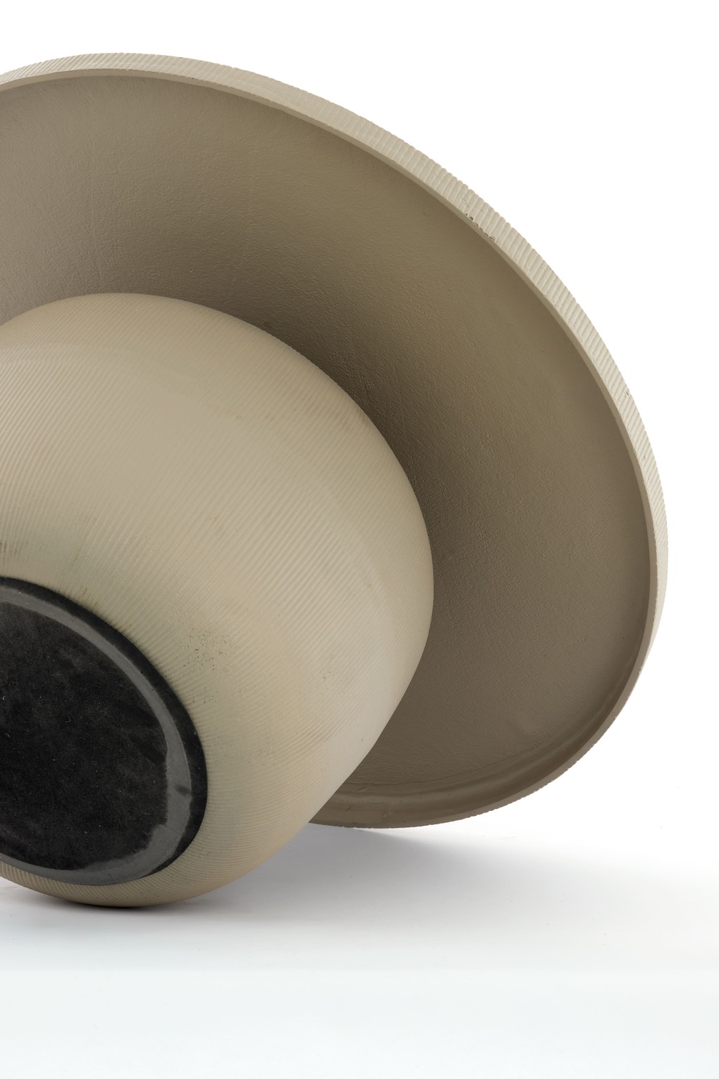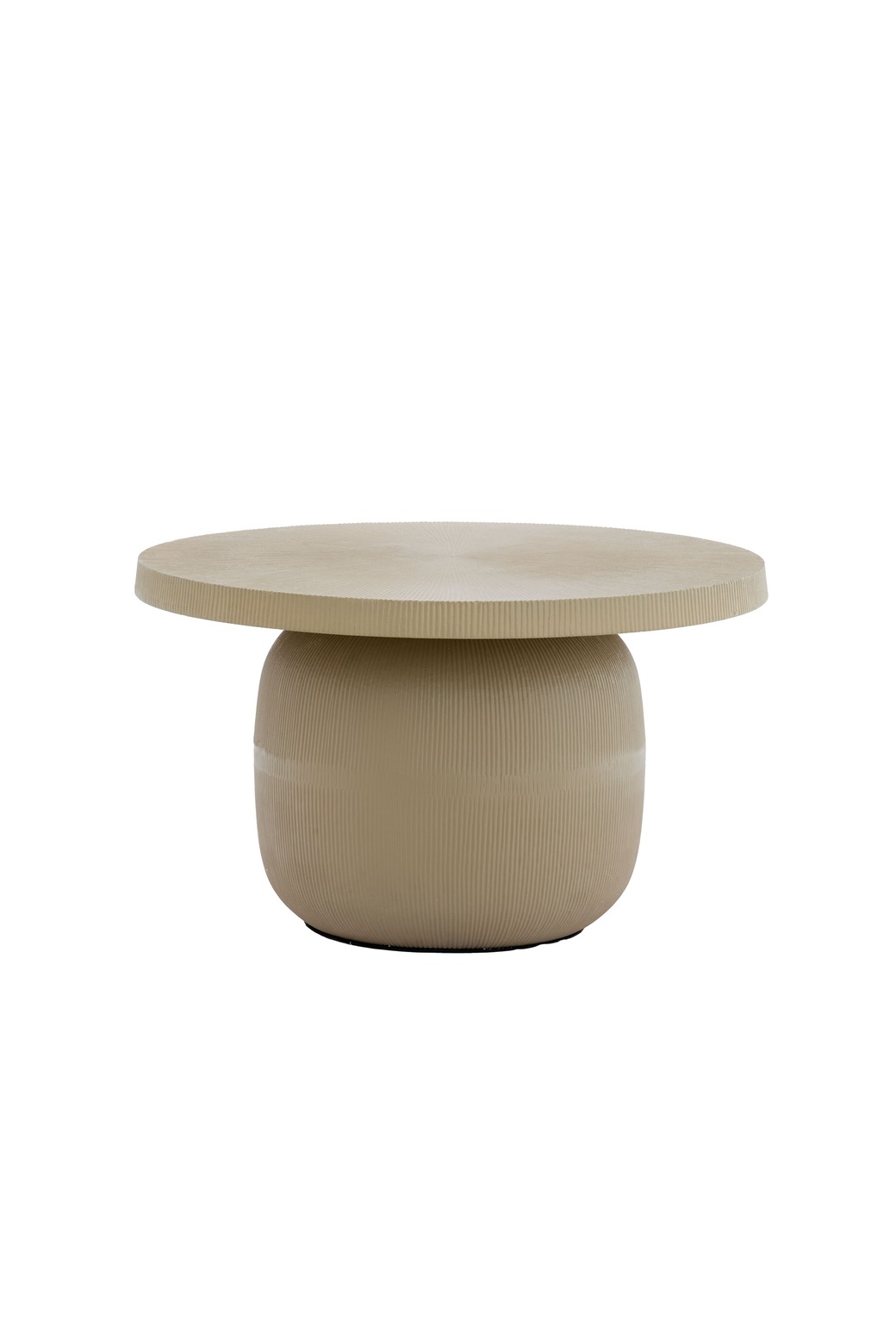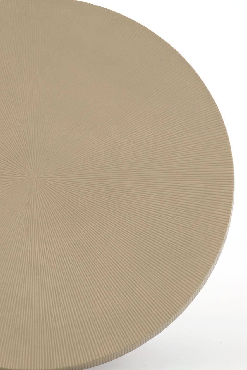 Homok színű kerek fém design dohányzóasztal stabil központi lábbal
