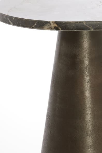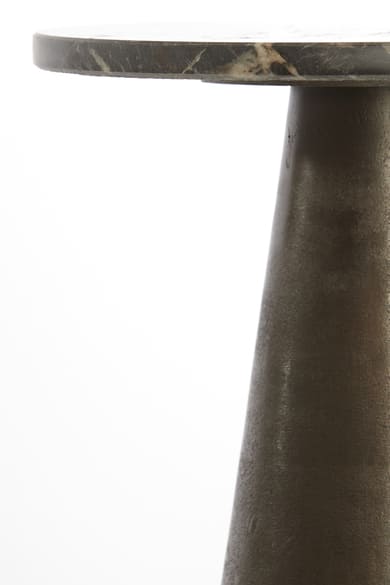 Sötétbarna színű márvány lapból és sötétbarna színű fém lábbal készült design lerakóasztal elegáns és strapabíró, ideális választás nappaliba, hálószobába kedvenc könyvei vagy akár egy csésze kávé számára.