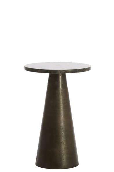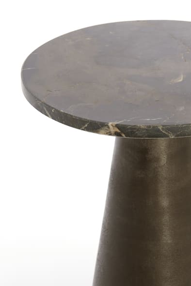 Sötétbarna színű design márvány lerakóasztal fémből készült kúpos talppal tökéletes kiegészítője lehet bármely szobának. Egyedi megjelenésével, stílusos márvány lerakófelületével vonzza a tekintetet. Helyezze kanapé mellé a nappaliba vagy akár az ágy mellé a hálószobába hogy helyet teremtsen kedvenc könyveinek, gyertyatartóinak vagy reggeli ébredéskor egy csésze kávénak.